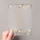 This Elegant Dusty Blue Wildflowers Clear Acrylic Wedding Invitation showcases delicate watercolor wildflowers in shades of dusty blue, purple and yellow on clear acrylic, complemented by contemporary gold typography. It is fully customisable with the couple's names and wedding details. The formal design and wording will add a touch of elegance to your wedding celebration.