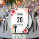 This elegant watercolor floral wedding table number is perfect for a modern wedding. The romantic design features an elegant watercolor floral frame with a bride and groom illustration and black calligraphy on a white background.