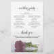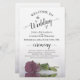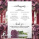 These wedding programs are elegant and tasteful, while still being budget friendly. The design features a single long-stemmed dusty purple, lavender, or lilac coloured rose lying on its side, reflecting in a pool of water with waves and ripples. The typography features lacy black script calligraphy, and there is room for details on the ceremony, the bridal party, and a short thank you.
