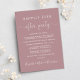 Stylish dusty rose elopement or smaller wedding announcement to inform family and friends that eloped or reduced the number of guests at your wedding, and to invite them to a wedding reception or celebration party. On the front, "Happily Ever After Party" is written in a mix of simple white typography and an elegant white script with swashes, and you can personalise your message and invitation in more detail and your names in a signature-like script. The reverse side features your favourite wedding photo, your first names and wedding date.