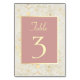 Simple, elegant, modern, ivory beige and dusty rose table number with sophisticated floral gold lace.
