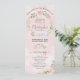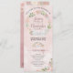 These beautiful wedding program features an elegant boho chic design with your names inside a hand painted wreath of roses, blossoms, and flowers in shades of blush pink, coral and mauve, with sprigs of eucalyptus leaves and greenery. The titles are written in fancy script calligraphy, and there is space for your ceremony and wedding party details, as well as a short thank you for your guest. The background on the front of the program is a marbled dusty rose colour, while the back features a darker mauve. Wonderful way to welcome your friends and family to your wedding celebration.