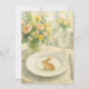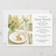 This Easter brunch invitation features an elegant watercolor illustration of a meticulously arranged place setting, complete with a floral centerpiece, crystal water glass, silver flatware, and a charming bunny motif on the plate. The design effectively conveys the warmth of an Easter family gathering. Customise this versatile template invitation with your details, available both as high-quality cardstock and convenient digital download formats.