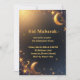 Celebrate Eid with style! This modern Islamic invitation features a gold crescent moon and stars on a deep navy background — perfect for family gatherings or community iftar events