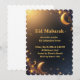 Celebrate Eid with style! This modern Islamic invitation features a gold crescent moon and stars on a deep navy background — perfect for family gatherings or community iftar events