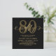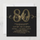 Elegant Eighty Gold Script Black 80th Birthday Invitation
