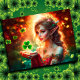Beautiful elf princess with a magic clover leaf in her palms, design for St. Patrick's Day, bright and colourful tones with glitter. (PLEASE! - See also other new collections for more choices)