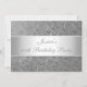 All Events, Celebrations, Announcements and Birthday Party Invitations. Suitable for all age birthdays and events. Rsvp is available upon request in similar style. Beautiful Stylish Embossed Metal Silver Grey Paisley Pattern Background with Silver White Satin Trims and White Text. Change style and size of text with customise.