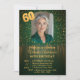The top of the design shimmers with a cascade of realistic, shimmering gold sparkle over a deep green background, reflecting light and luxury. The large '60' numbers are rendered in a sleek metallic gold. A deep, dark green background and gradient offer a refined and upscale look, making it ideal for a formal dinner party or an evening celebration. Easily add your favourite photo to the central frame to make this card truly unique and personal.