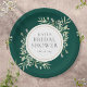 Elegant Emerald Gold Greenery Bridal Shower Paper Plate