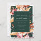 Create your own personalised wedding invitations featuring elegant floral design. Add your custom details of your special day in minimalist chic typography. This wedding invitation features boho chic fall floral of watercolor dahlia flowers and autumn botanical leaves on emerald green colour background.