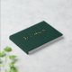 The back cover continues the elegant theme with a personalised touch, displaying the location and year of your wedding in a clean sans-serif font on the same luxurious emerald green background. Additionally, the spine of the guest book is personalised with your chosen text in a serif font, making it a cherished keepsake that will remind you of your special day for years to come.