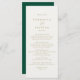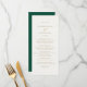 This elegant wedding menu features a chic modern design. The front is a cream with a modern gold typography, while the reverse side is a dark emerald green with your initials in a gold typography. Personalise with your names, wedding date and your menu.