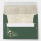 Simple, elegant, vintage boho emerald green green 5x7 envelopes for Wedding invitations with gold floral lace and return address.