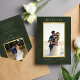 Simple classic modern dark emerald green and gold frame minimalist typography wedding thank you card with 2 custom photos on a vintage style antique distressed looking background. +++++++++++ The invite is suitable for an elegant classy formal wedding ceremony and reception.