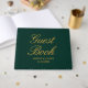 Elegant emerald green and gold wedding guest book. Personalise it with the newlywed couple's names and event date on the front and spine.