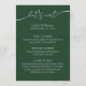 Elegant Emerald Green Modern Script Wedding Menu with modern script and classic dinner menu options for guests. Personalise the text for your bar menu or add text for buffet menu.
