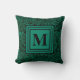 Elegant Emerald Green Monogram Foliage Pattern Cushion