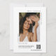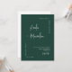 This elegant modern minimalist wedding invitation features a clean emerald green background with stylish calligraphy of the couple’s names and a simple serif font for the event details. The timeless design includes a large personalised photo of the happy couple on the back, accompanied by a QR code that allows guests to RSVP quickly and conveniently.