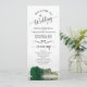 This beautiful wedding program features an elegant design with a single long stemmed emerald green coloured rose lying on its side reflecting in water. The titles are written in fancy script calligraphy, and there is space for your ceremony and wedding party details, as well as a short thank you for your guests. Wonderful way to welcome your friends and family to your wedding celebration.