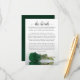 This beautiful wedding enclosure card is designed to give you extra space for whatever information your guests may need, including website, registry, reception, travel, accommodations, or any other details. The card features a gorgeous design with a single reflecting emerald green coloured rose and a lacy script calligraphy title reading "the details." The back is a deep marbled emerald or forest green colour.