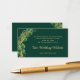 Give your guests details about the celebration party and let them know more about you as a couple by giving them your wedding website. This stylish card in emerald green and gold colours with elegant eucalyptus foliage has text and QR code templates. Please personalise the cards with the bride and groom's names, website, and QR code before ordering. Messages are also easy to personalise.