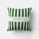 Personalised Elegant Emerald Green & White Stripes Pattern Name Throw Pillow