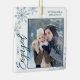 This square Christmas ornament is a perfect gift for the newly engage couple. The design features a photo frame with handwritten text "Engaged" and is accented with light blue snowflakes. Personalise with a pictures of the couple, their names and year.
