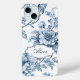 Elegant Engraved Blue Floral w/Name or Monogram Case-Mate iPhone Case