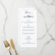 Classically chic design features custom text graphics in a lovely flowing script font and editable text fields for your celebration menu details with elegant engraved blue floral embellishment. The back features a complementary floral wreath encircling your monogram. Shop matching products in Collections at the Grafixmom store.