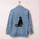 Elegant Enigma: Artistic Black Cat Denim Jacket