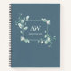 This elegant personalised notebook features delicate watercolor eucalyptus greenery and botanical floral frame on a blue grey background. Personalise the cover with your initials and name to create a unique notebook for journalling, note-taking, planning, or work.