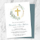 Elegant Eucalyptus Gold Cross Script Baptism Invitation