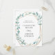 Modern, elegant wedding postcard invitation in white, green, gold (imitation), eucalyptus design. Perfect for Covid19 times, when you're celebrating with just immediate family but want to include your friends in your wedding ceremony via live stream. Edit your product in minutes. Via "further personalize" you can change font/size/color and position.