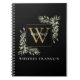 Elegant Eucalyptus Greenery Black Gold Monogram Notebook