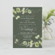 The back provides space for detailed wedding information such as ceremony location, reception details, accommodations, and RSVP notes. The deep green background adds depth and elegance, making this invitation ideal for garden weddings, modern romantic celebrations, and nature-inspired events.