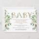 Elegant Eucalyptus Greenery Gold Alphabet Baby Shower Invitation - Celebrate the upcoming arrival of your precious baby with this elegant, modern and pretty horizontal 'Baby Shower Invitation' featuring a gold foil like alphabet decorated with foliage of white soft cotton and green eucalyptus leaf foliage on each side. The background features sage green colour. All the texts are pre-arranged for you to personalise easily and quickly with your baby shower details.