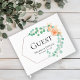 Design features an elegant printed gold coloured oval frame decorated with watercolor eucalyptus stems and an peach/orange ribbon. The back consist of a coordinating design of soft watercolor eucalyptus stems and an orange/peach floral. Matching items to complete your event collection are available in our Zazzle store!