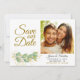 Elegant eucalyptus Save the Date card with custom photo, names and date. The back side is sage green, but you can change it to white or another colour before ordering.