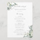 This unique botanical design features a curving branch of elegant watercolor eucalyptus leaves with artistic silver outlined leaves and white wildflowers.