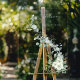 This unique botanical design features a curving branch of elegant watercolor eucalyptus leaves with artistic silver outlined leaves and white wildflowers.