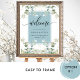 Welcome your guests with this exquisite wedding (or any other event) welcome sign with exquisite watercolor greenery Eucalyptus decorative borders and an elegant mist blue frame with a welcoming message with elegant modern hand-written calligraphy details. Watercolor greenery in a beautiful blend of green, blue, beige, yellow tan, and orange hues. 8" x 10" is only our default size, the sign is available in a variety of size options. IMPORTANT NOTE: This sign is in premium poster paper style, easy to frame or glue/staple to inexpensive MDF or foam board for display. If you prefer this sign prepared for display already on a foam board, please follow these easy steps: on this sign product page, scroll up, until you see a section with images called "Transfer design to a product". Use the arrow on the images to look at all the options, until you reach the "Foam Boards" option. Click on it to transfer the design into a foam board for you. Initially, sometimes it transfers the design into a very big foam board size, nevertheless, you can change the sign into the size you need on the product page and even see how it looks already in a stand. Adding this design to your shopping cart will tell you the back side is blank. Don't worry about it, as this only means that the back of the sign will be white. If you need help, please send me a message and I'll get back to you as soon as possible".Design part of our "Elegant Greenery Eucalyptus Wedding and Events" collection with a variety of coordinating products available. The same design with the inner frame in green and beige tan is also available.