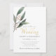 Elegant eucalyptus leaf gold script wedding invitation