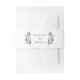A simply elegant green calligraphy script with two watercolor eucalyptus leaves on either side to decorate this beautiful, minimalist fall wedding belly band. Lovely modern evening wedding invitation accessory for a garden occasion at night.