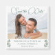 An elegant green calligraphy script with two watercolor eucalyptus leaves on either side at the bottom to decorate this beautiful engagement photo Save the Date magnet for a fall wedding. Lovely modern evening wedding magnets for a garden occasion at night with your couple photograph underneath the cursive typography.