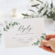 Beautiful delicate eucalyptus foliage wedding reply RSVP card. Part of a modern collection.