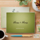 The front features a clean layout for your recipient's address, with your names elegantly presented in a classic script font. On the back flap, a subtle and beautiful watercolor eucalyptus accent adds a refined, branded touch. The design is both beautiful and functional, with ample, easy-to-read space for mailing information.