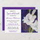 Gorgeous white Gladiola flowers. Elegant against a purple background with sprigs of green and yellow. www.fancifulwatercolors.ca. A unique invitation for graduations, birthdays, anniversaries, bridal or baby showers, retirements or reunions - images from the designers original watercolor painting. Entire invitation can be customised or modified to suit yourself by clicking on the 'customise' button and follow the boxes. Have fun creating your own specific party event information and if you require help, please do not hesitate to contact me. There are also matching customisable party accessories in this store.