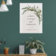 Winter Greenery Arch Wedding Sign featuring an arched frame of watercolor evergreens. Customise with your information. Click "click to customise further" to change the font style, size or colour.