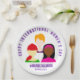 Celebrate IWD (International Women's Day) on March 8th with these paper plates, which feature a trio of colourfully attired women on this special day in elegant block lettering.